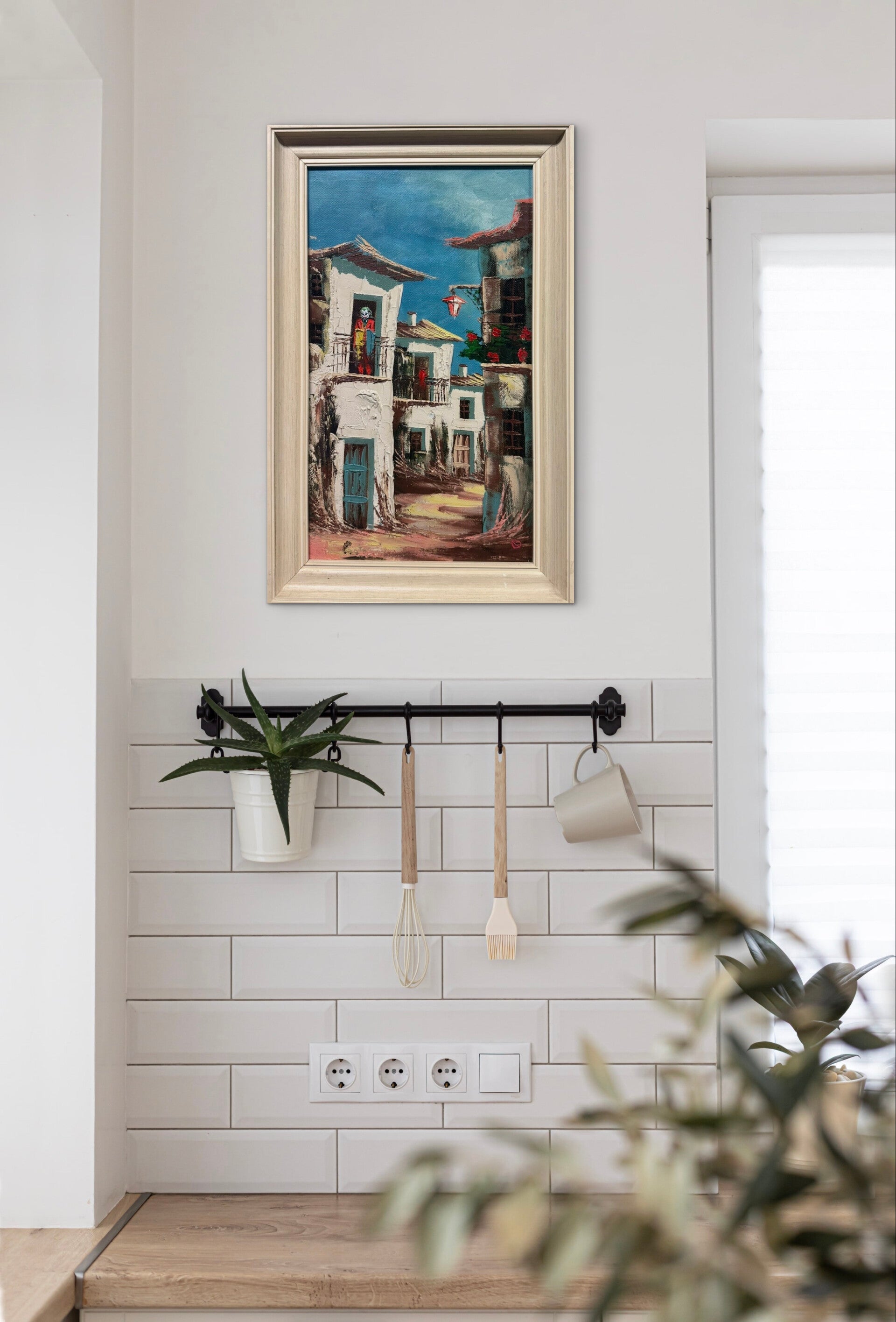 Een kringloopschilderij met een geheim… The Joker verscholen, volledig opgegaan in het doek. Alleen wie goed kijkt, ontdekt de glimlach achter de vernislaag en opgefriste lijst.