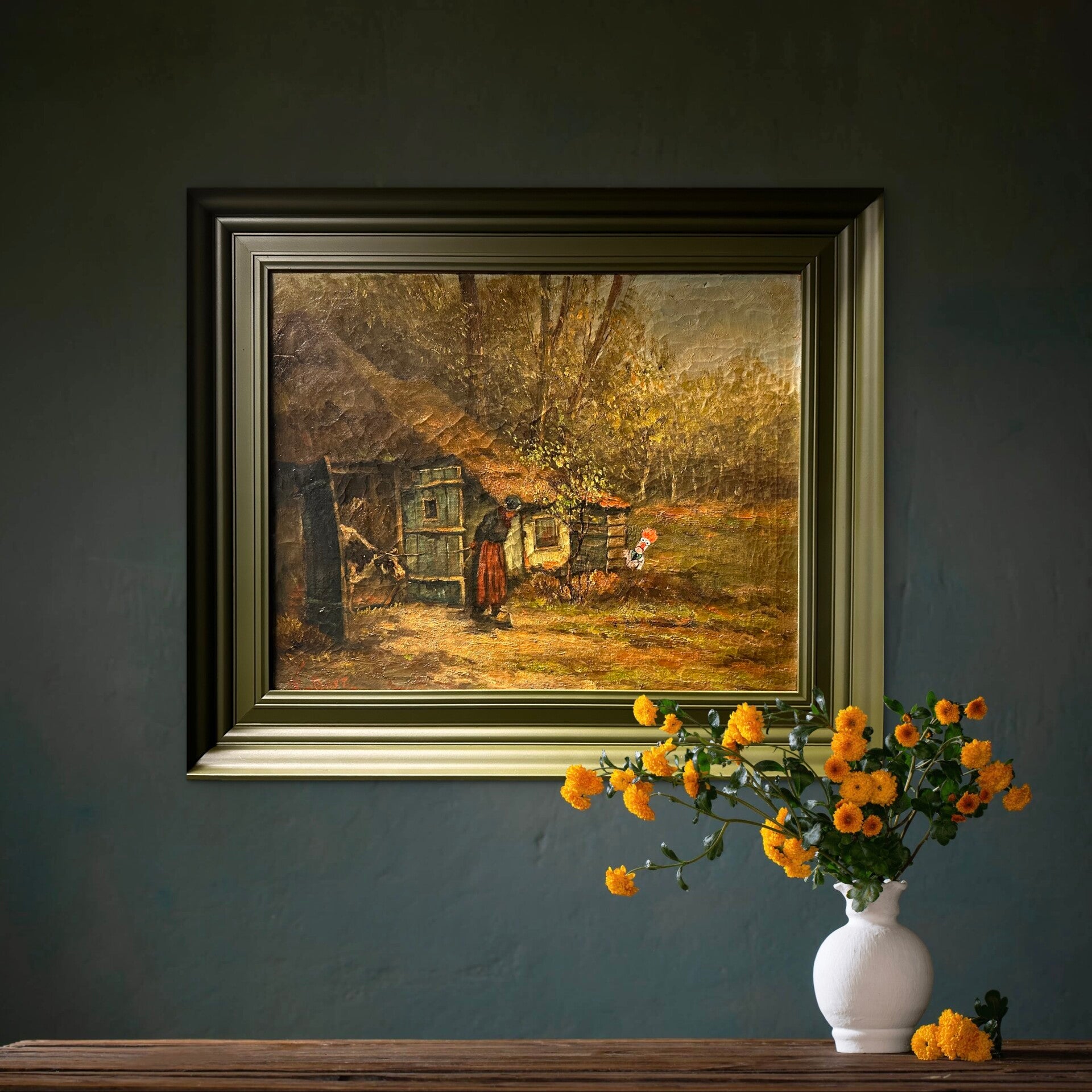 Kringloopschilderij getransformeerd tot mixed media ode: Meep Meep die stiekem om de hoek gluurt. Met een opgefriste lijst en een extra vernislaagje krijgt dit werk zijn cartooneske knipoog én een nieuw verhaal.